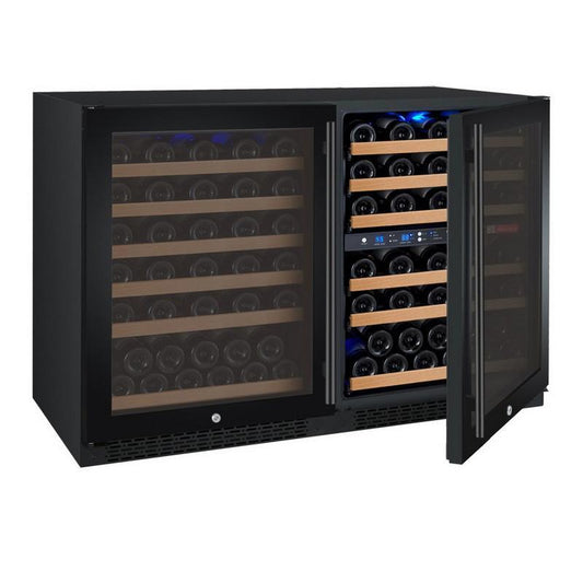 47" Wide FlexCount II Tru-Vino 112 Bottle Dual Zone Black Side-by-Side Wine Refrigerator