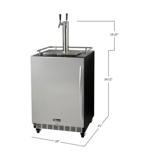 Kegco Dual Faucet Digital Commercial Undercounter Kegerator with X-CLUSIVE Premium Direct Draw Kit - Right Hinge