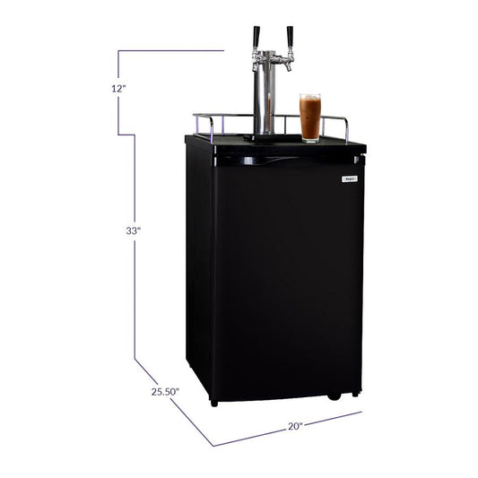 Kegco Dual Faucet Javarator Cold-Brew Coffee Dispenser with Black Cabinet and Door