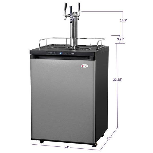 Kegco Three Faucet Digital Commercial Undercounter Kegerator with X-CLUSIVE Premium Direct Draw Kit - Right Hinge