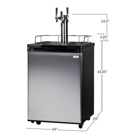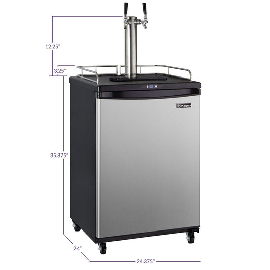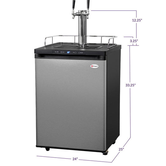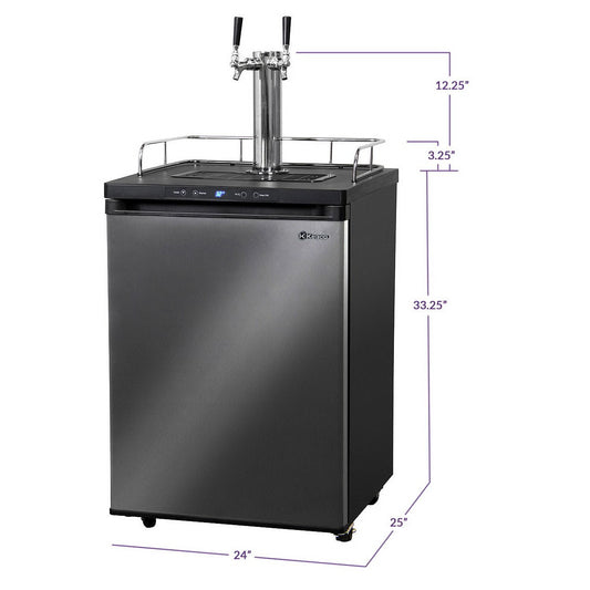Kegco Two Faucet Commercial Grade Digital Kombucha Kegerator - Black Cabinet with Stainless Steel Door