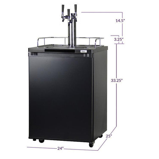 Kegco Home Brew Triple Faucet Draft Beer Dispenser - Black Cabinet with Matte Black Door