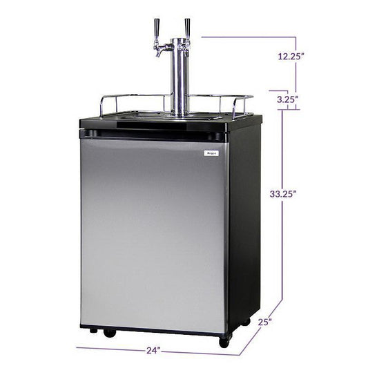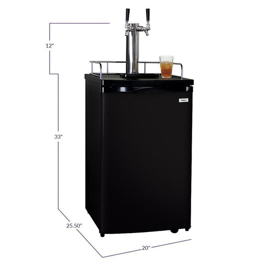 Kegco Dual Faucet Kombucha Keg Cooler with Black Cabinet and Door