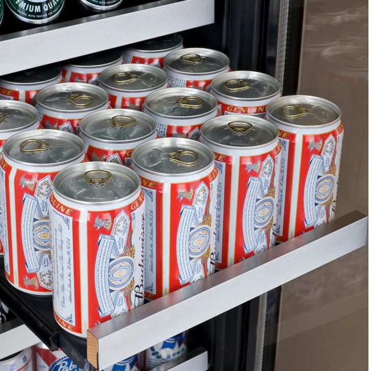 - Allavino's FlexCount shelving design gives you flexible storage options for up to 28 standard beer bottles, 64 12-oz. cans, and 30 wine bottles