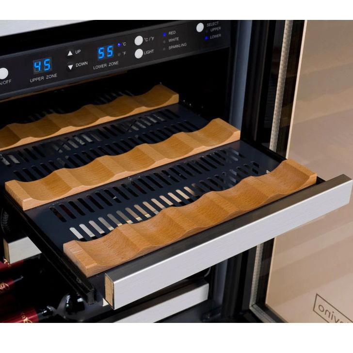- Roller-glide shelves extend effortlessly minimizing agitation to the wine