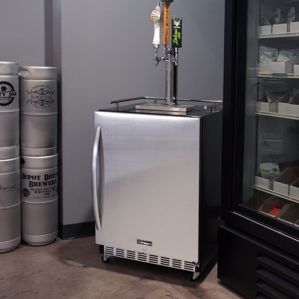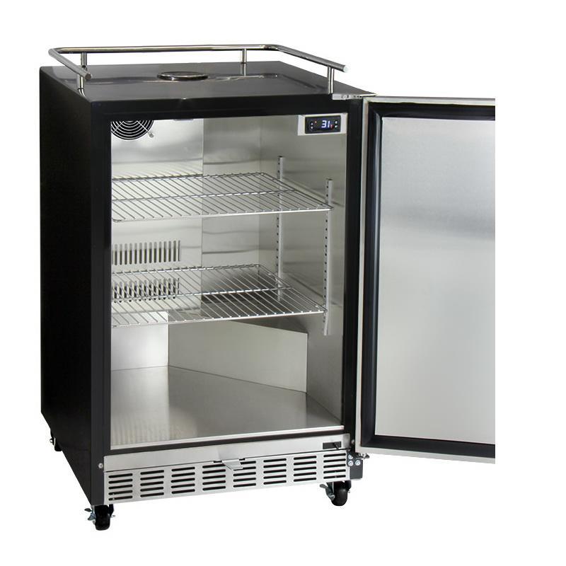 ETL listed and packed full of powerful and convenient performance features, Kegco's versatile HK38BSC-3 Commercial Undercounter Kegerator is perfect for serving up to three different kegs of beer, coffee, kombucha, or wine in your bar, restaurant, or tasting room. At 3200 therms, it utilizes the most powerful compressor in its class to deliver unbeatable cooling for fast recovery and temperature pulldown in busy commercial environments. The temperature can be easily monitored and adjusted using an intuitive digital display, and the wide 23-59 F temperature range makes this keg cooler suitable for dispensing a wide variety of beverages. Designed for both built-in and freestanding use, it comes complete with a commercial direct draw kit and all of the necessary draft beer parts to tap up to three kegs simultaneously.