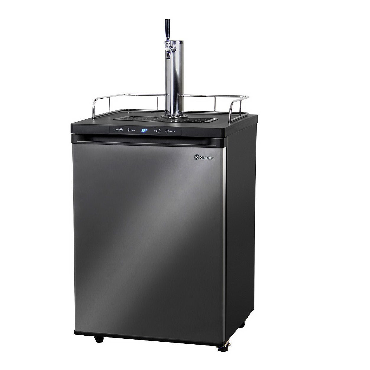 Kegco One Tap Faucet Digital Temperature Kegerator - Black Cabinet with Black Stainless Steel Door