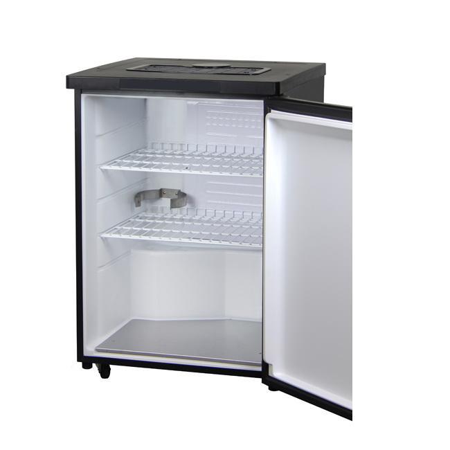 Introducing the KOM20B-3NK Three Faucet Kombucha Dispense System from Kegco! This high quality keg tapper allows you to dispense up to 3 Cornelius kegs of kombucha, the nutritional probiotic tea that is packed with compounds that support your digestive and immune systems, detoxify, energize, clarify your skin, prevent disease, and elevate your mood. This kombucharator can also be converted into a regular refrigerator with two adjustable storage shelves, and it has a stainless steel interior floor plate that provides durability by displacing the weight of your kegs evenly over the floor of the cabinet.