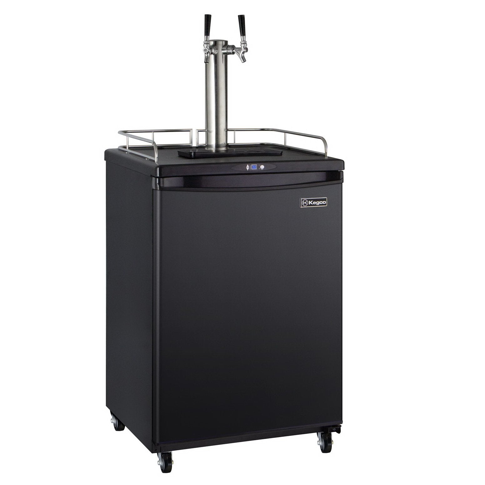 Kegco Two Faucet Commercial Grade Kegerator with Digital Temp Control - Black Cabinet with Black Door