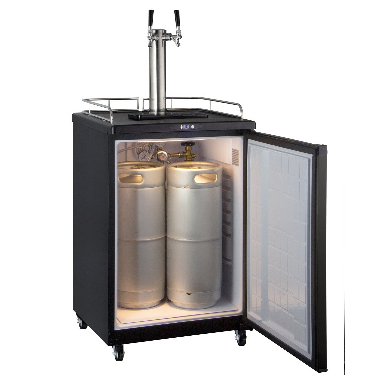 Two Faucet Commercial Grade Kegerator with Digital Temp Control - Black Cabinet with Black Door Z163B-2NK